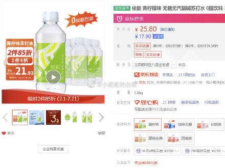 依能 青柠檬味 无糖无汽弱碱苏打水 350ml*15瓶,学生价买2件22.8