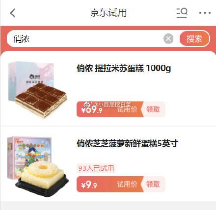 京东试用搜索“俏侬”,今日多款蛋糕试用包邮