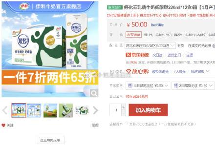 舒化 无乳糖牛奶低脂型220ml*12盒/箱,买3件72.5包邮