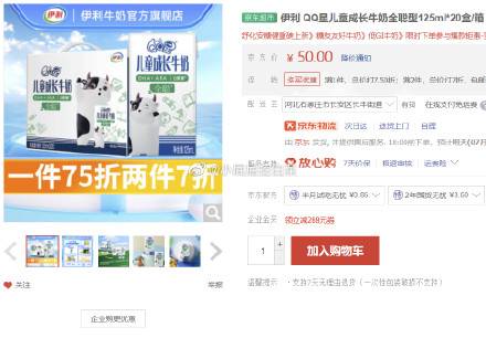 伊利 QQ星 成长牛奶全聪型125ml*20盒/箱,买3件80包邮