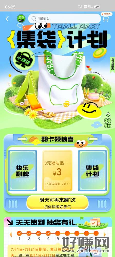 天猫超市-签到-小绿袋福利