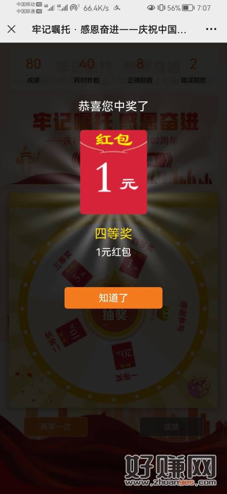 农行,一共中了8元微信红包
