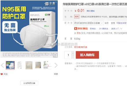 口罩还有 (不显示即下架,华制 N95防护口罩25只/盒,0.01