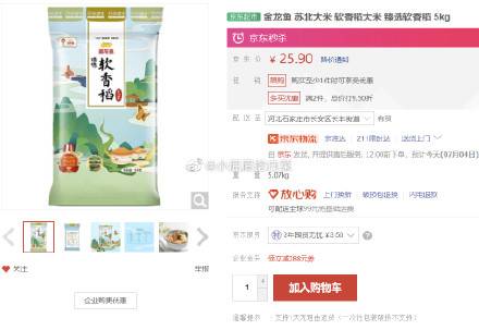 部分用户砸落11-10券,金龙鱼 苏北大米 臻选软香稻米5kg,15.9