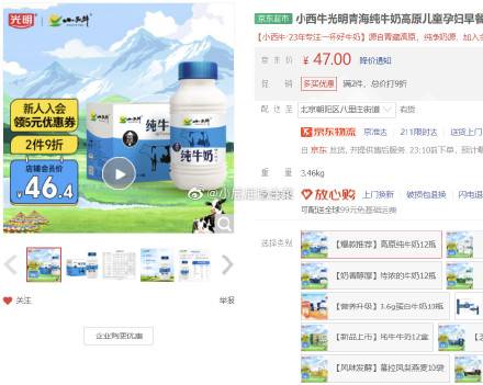 小西牛 光明青海纯牛奶243ml*12瓶/箱,如有首购3礼金,买2件71.6,如加入店铺会员价更低