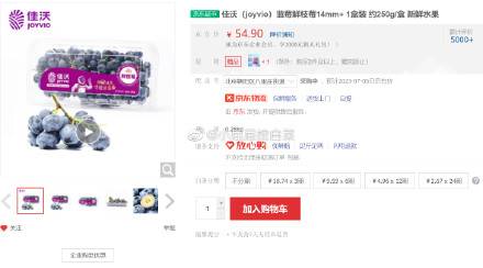 评论领取59-20券,佳沃 蓝莓鲜枝莓14mm+ 1盒装 约250g/盒,买2件89.9