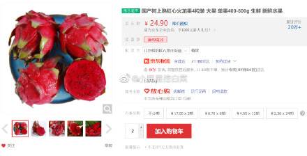 国产树上熟红心火龙果4粒装 大果 单果400-500g,买2件39.9