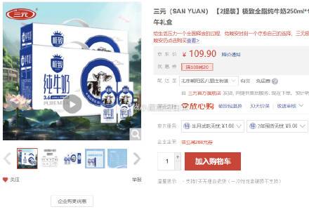 三元 极致全脂纯牛奶250ml*12盒*2提装,买2件138.8