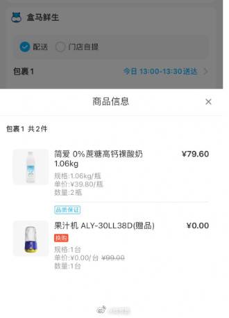 盒马简爱送榨汁机