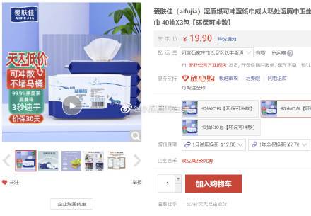 爱肤佳 湿厕纸40抽*3包,7.9包邮