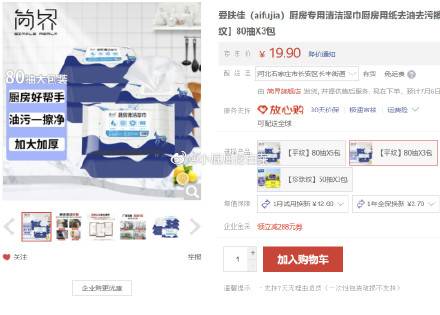 爱肤佳 厨房湿巾80抽*3包,7.9包邮