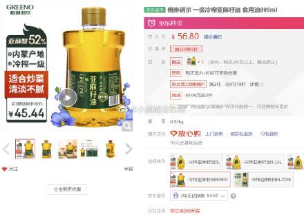 格琳诺尔 一级冷榨亚麻籽油 食用油909ml,叠加页面9折券,买3件73.1,目前买2送1到手共4件