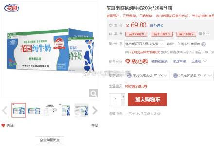 花园 利乐枕纯牛奶200g*20袋*1箱,买2件109