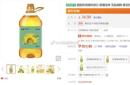 丽兹 物理压榨 充氮保鲜 葵花籽油 4L,36包邮