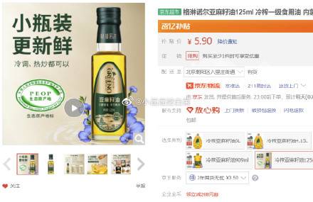 格琳诺尔亚麻籽油125ml,5.9包邮