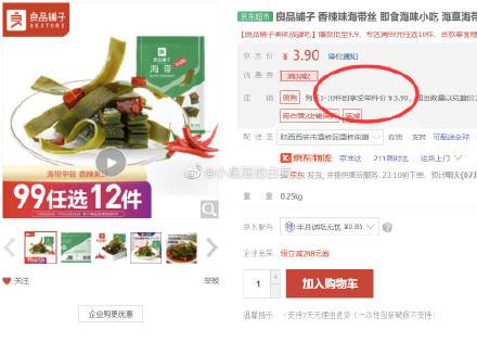 良品铺子 香辣味海带丝218g,陕西地区3.9,限购10件