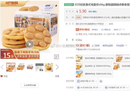 三只松鼠港式鸡蛋仔400g,湖北地区5.9,限购1件