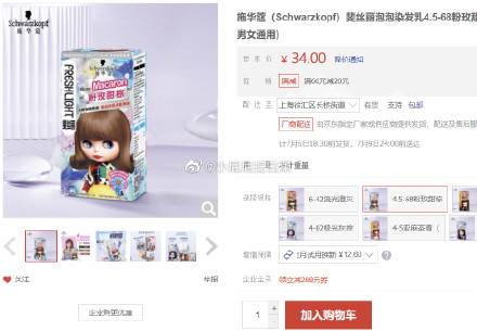 施华蔻 斐丝丽泡泡染发乳 粉玫甜棕,买2件48包邮