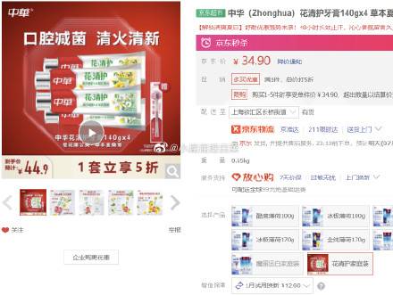 中华 花清护牙膏140gx4,17.45