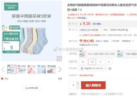 全棉时代婴童春夏精梳棉中筒提花袜5双,plus会员6.55包邮