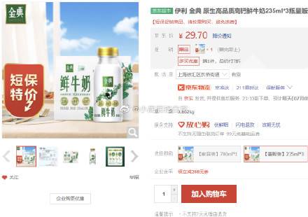伊利 金典 高钙鲜牛奶235ml*3瓶(短保特价),京喜提交,17.79,买1送1到手2件