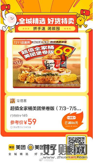 怒降10元,肯德基|超值全家桶美团堡卷版,59