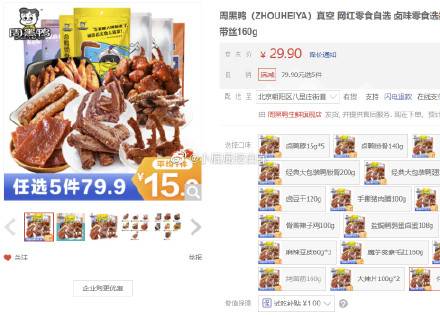 周黑鸭 真空自选 卤味零食选择装,买5件44.9包邮