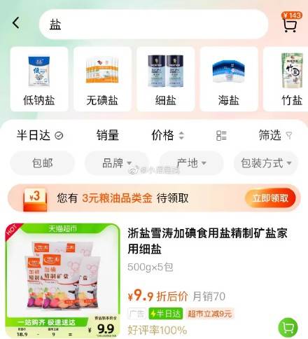 猫超首页搜,盐,有3元粮油品类金