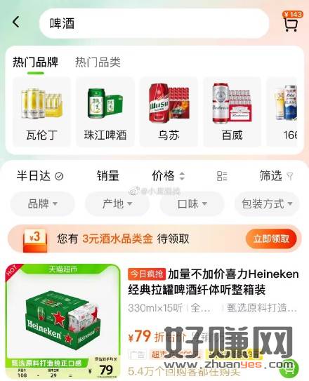 啤酒,有3元酒水品类金