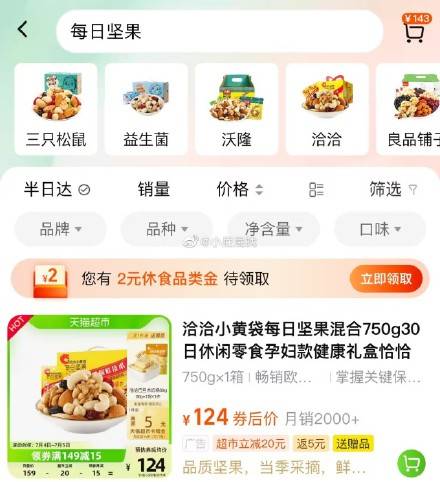 每日坚果,有2元休食品类金