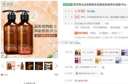 亮荘男士古龙香氛沐浴露500g,部分地区9.9