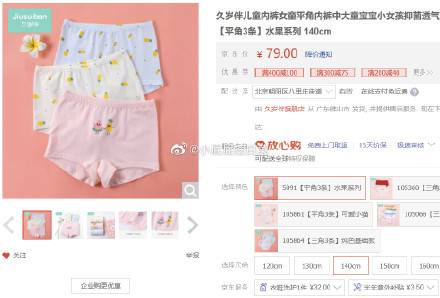 久岁伴 儿童内裤 女童平角内裤3条,加购到京喜小程序,36