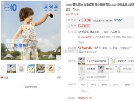 aqpa夏款男女宝宝超酷背心,叠加评论里20-3券,京喜提交16.9