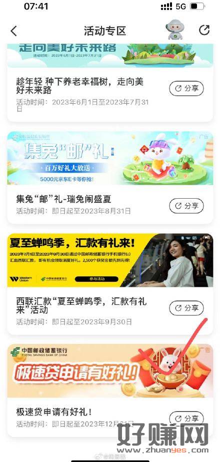 邮政APP活动专区最下面一个进去直接抽