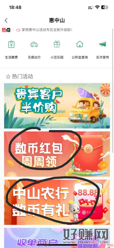 5 然后去下图中山城市专区两个如图用数币钱包付了就行了,农行操作期间不用挂ip。