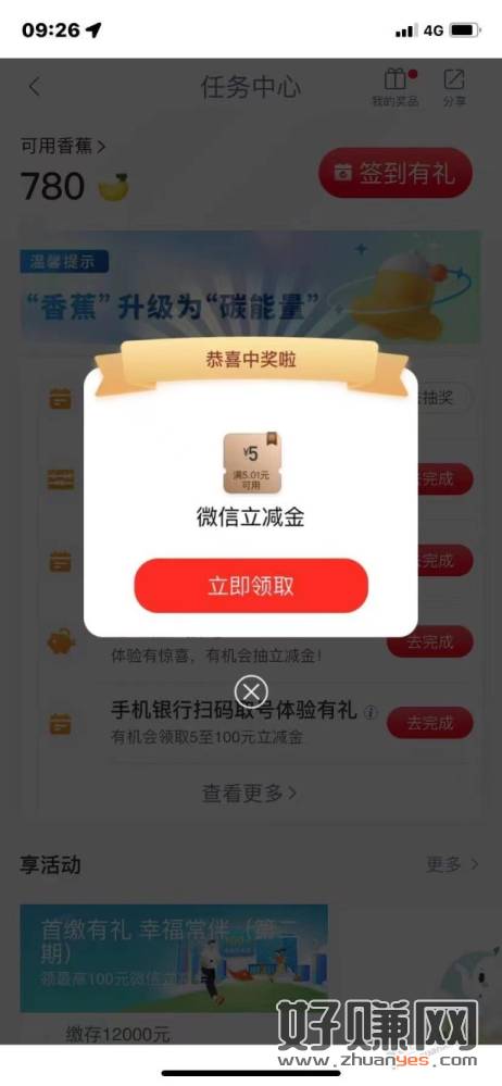 招行APP首页朝朝盈五周年签到领朝朝盈体验金