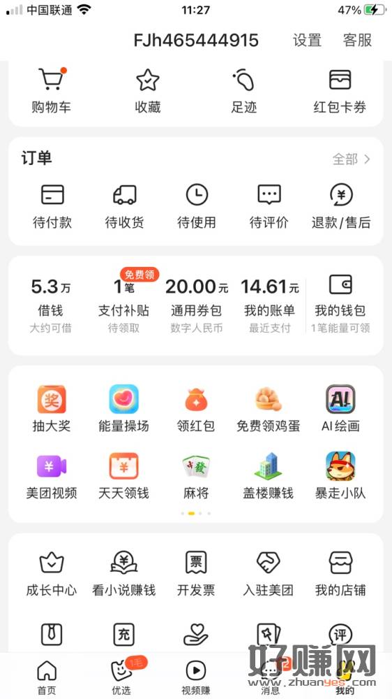 美团app看下图,点开美团视频,每天低保2➕,打款视频看完,