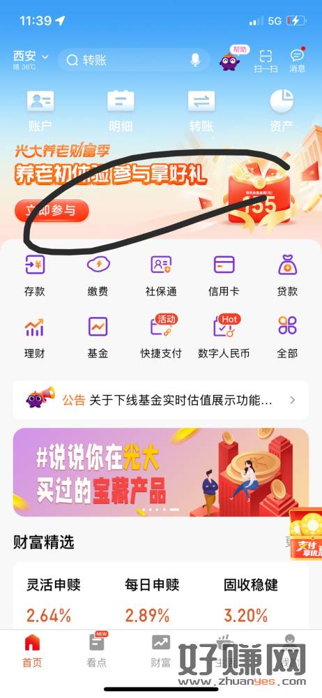 招行APP首页朝朝盈五周年签到领朝朝盈体验金