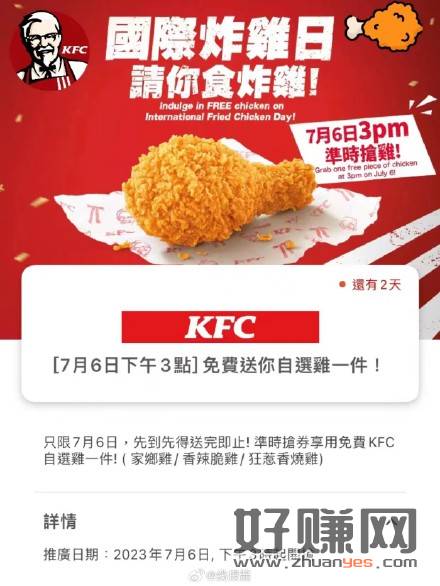 香港地区,15点开始,yuuAPP可领肯德基自选鸡