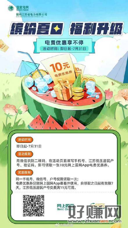 江苏地区,10元国网电费券,满11即可