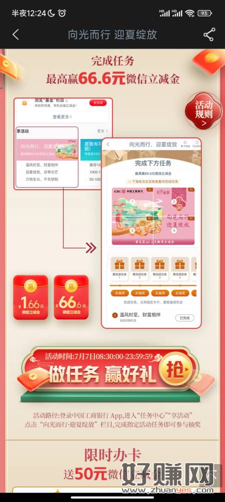 提醒贴:7月7日,就是今天周五,8点30,工行任务更新抽,最高66.6