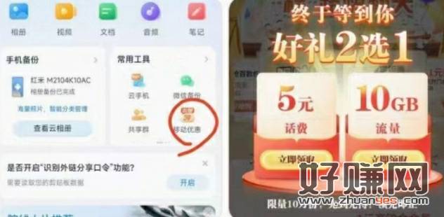 中国移动云盘首页进去5话费,好像限广东,其他地区自测