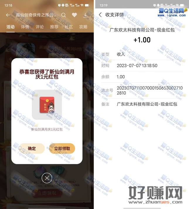 oppo游戏中心下载新仙剑抽1-188元现金 亲测1元秒到