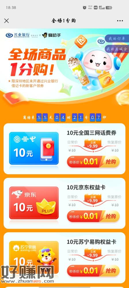 蜂助手,现深圳地区未开通兴业银行借记卡用户,1分购e卡