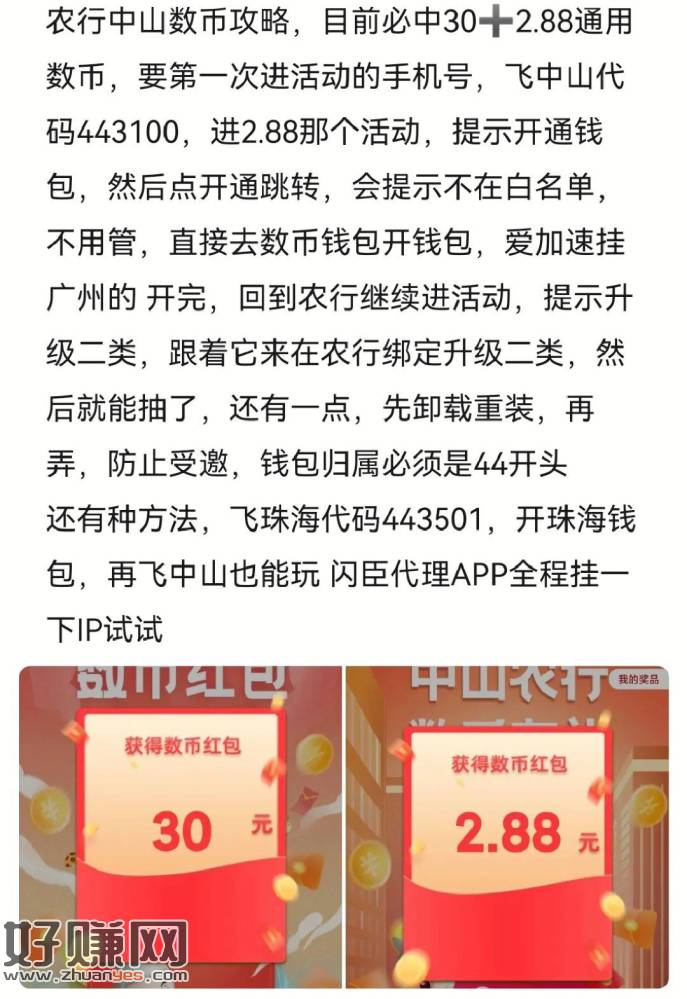 挂广东ip开农行数币钱包,农行飞中山代码443100,点活动升级二类就好了