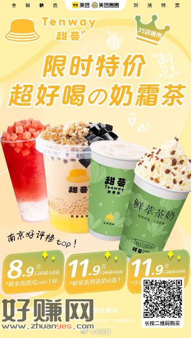 美团到店,过期自动退系列,甜荟茶饮,8.9起