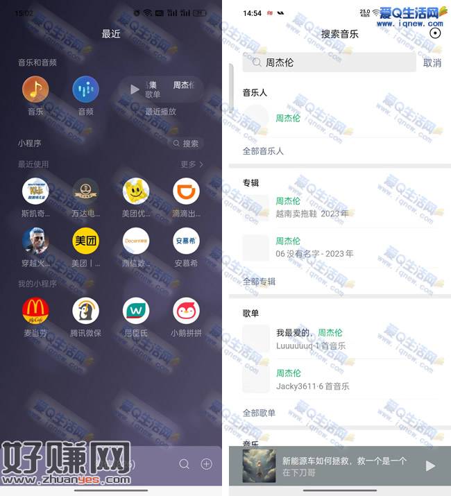 微信更新到最新版本-首页顶部下拉到小程序页面-音乐点进去搜素【周杰伦】任意一首歌点进去
