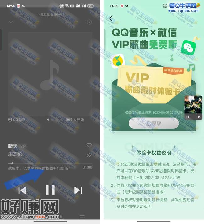 微信免费领2个月QQ音乐会员 无限制都可参与