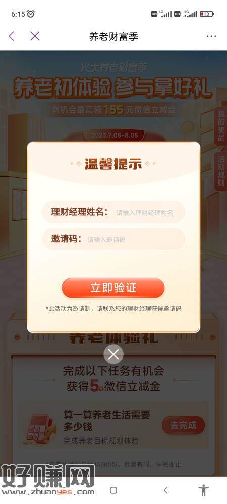 光大银行养老5块还有几万份,认实名,一个人只能领5。有谁知道怎么加理财经理微信吗?交给我给你一瓶快乐水