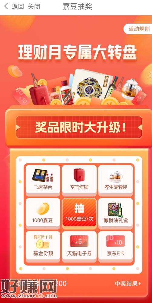 嘉实理财嘉APP,首页横幅,规则说全对才有1000积分,我答错了一题也给了1000?怎么回事?最好是评论区蹲一下答案。一天抽一次。